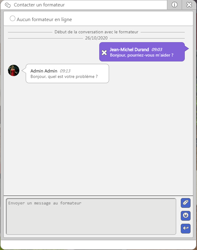 Vous pourrez écrire votre message et voir les réponses du formateur dans l’interface qui s’ouvre.